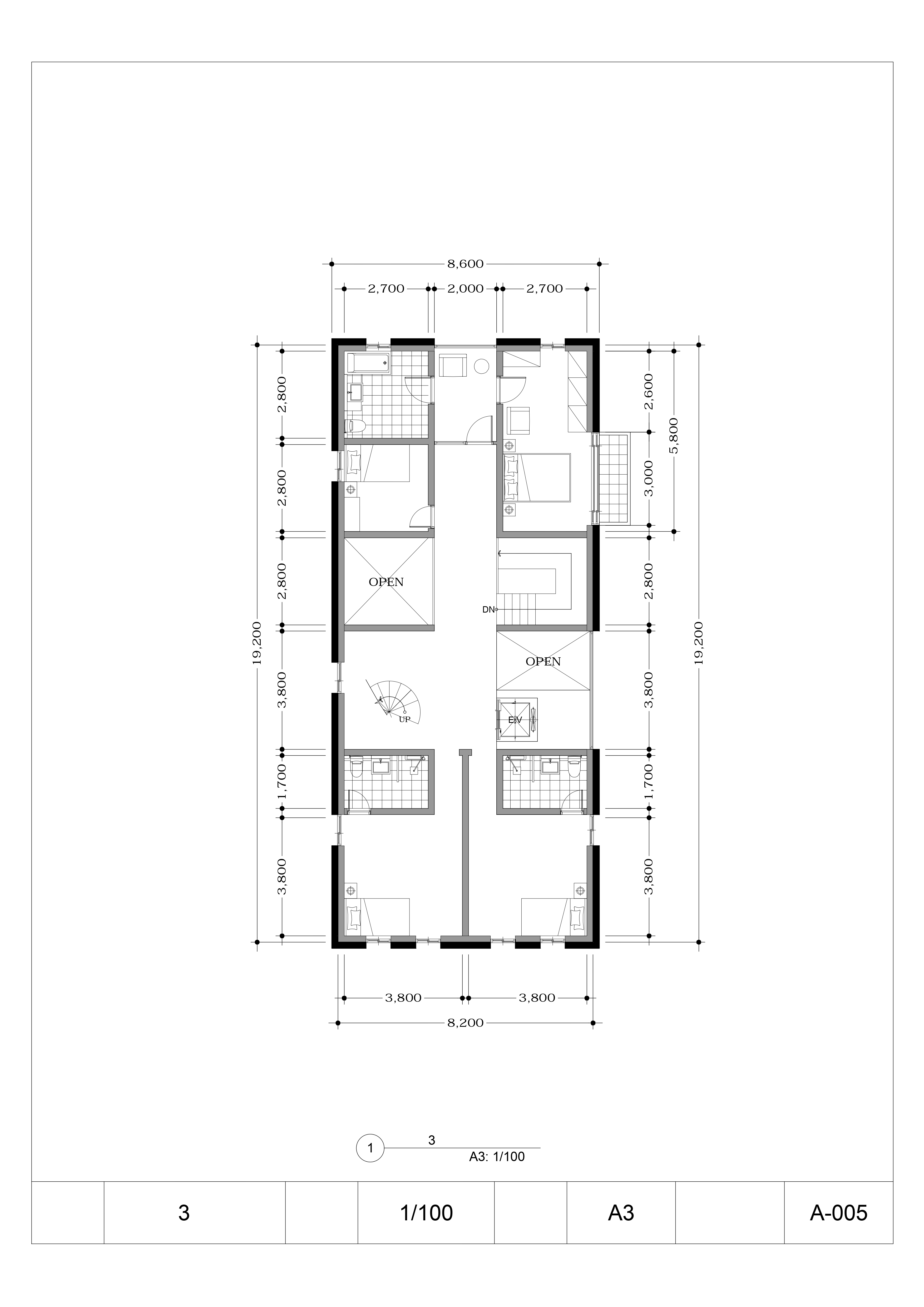 This section presents the complete architectural drawing set, including plans, elevations, and sections that illustrate the spatial configuration and formal resolution of the project.