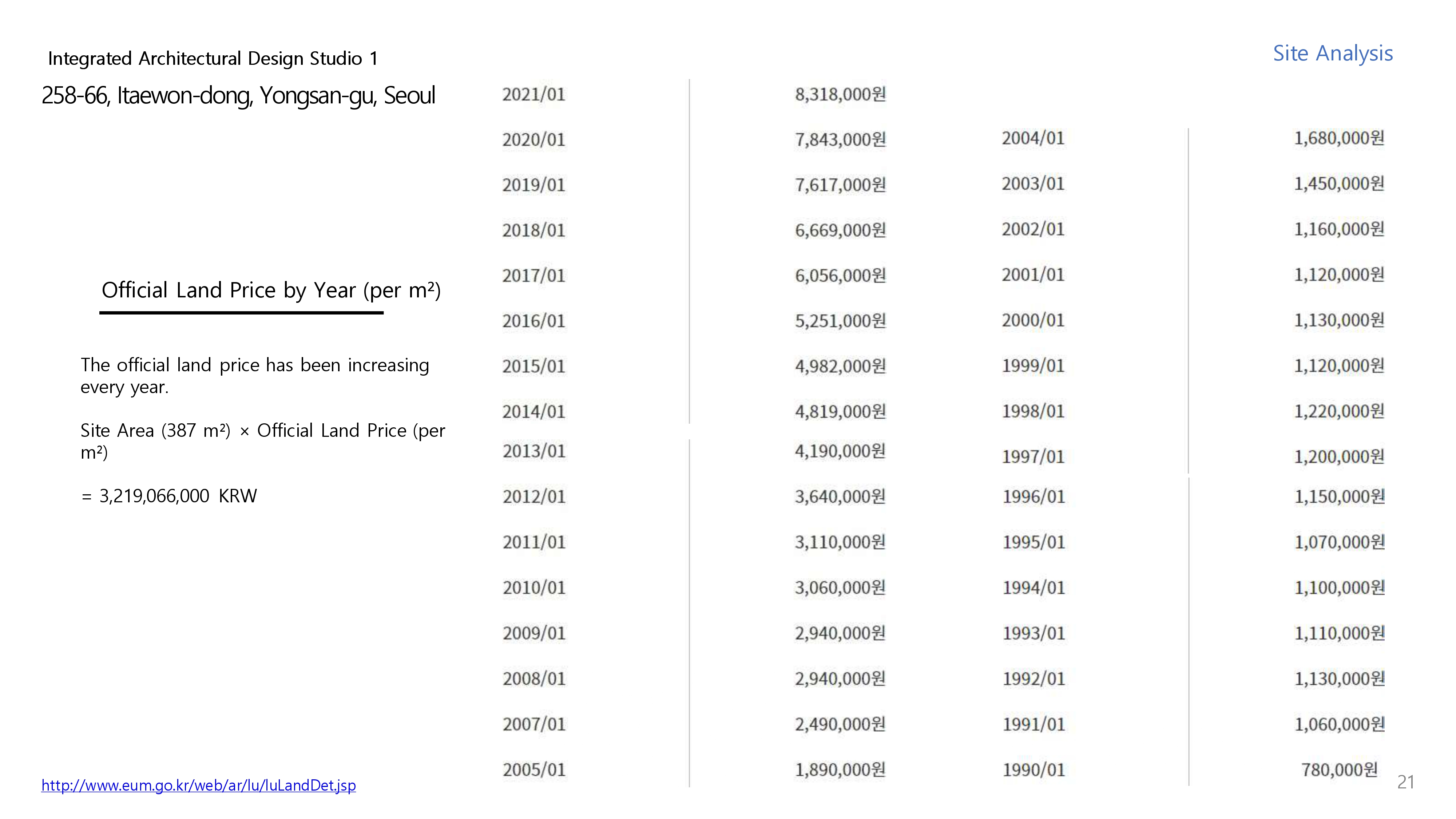 - Regulatory Review, Land Price, Existing Building